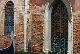photo©VenetiaMicioJ'ai continué ma promenade d'hier car j'aime bien me perdre autour du Campo S'Boldo.Vous n'ignorez pas que la petite corte del Tagiapierà est proche et que je ne manque jamais une petite visite dans ce lieu que j'affectionne particulièrement.Juste à côté il y a deux calli qui portent le même nom, de le Oche.Ces deux voies se rejoignent au rio de S' Agostin, pour passer le petit ponte.Cet endroit est très calme et offre quelques belles découvertes, notamment cette belle grille au dégradé de couleurs en harmonie avec l'eau du rio.