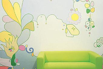 J’ai découvert cette artiste néerlandaise à la Tate Gallery de St. Ives. Oui, à la Tate, quand même. Ça vous met directement en condition. Car, à première vue, l’exposition temporaire qui la met à l’honneur (et qui s’appelle “No Big Deal Thing” = Truc de pas grand-chose, en quelque sorte) déroute par sa naïveté désarmante, son côté enfantin et décoratif, bref, le contraire de l’art “sérieux”. Or, précisément, puisque c’est affiché à la Tate, (-et comment ! elle a même peint sur les murs du musée !!!), ça leur confère d’emblée un statut d’oeuvre d’art. Alors, vous les regardez autrement, et c’est toute l’audace de cette exposition.