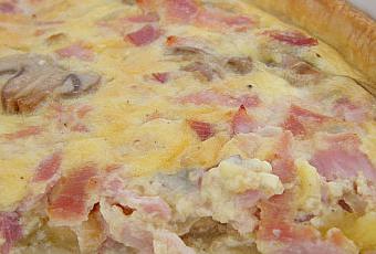 Battre les oeufs avec la crème. Ajouter le jambon coupé en petit morceaux, les champignons bien égouttés, le gorgonzola coupé en petits morceaux et l'oignon.