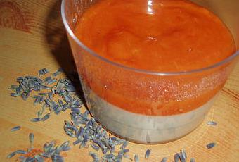 Et oui encore une panna cotta, cette fois-ci j'ai voulu utilisé la lavande d'un de mes partenaires, je n'en avais jamais goûté en cuisine, j'avoue que je trouve le parfum olfactif assez fort, trop à mon goût, mais en cuisine, un goût subtil, pas trop prononcé, nuancé avec l'abricot, c'est délicieux.