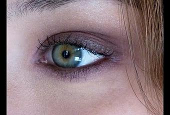 Je pose ensuite dans le creux de la paupière mon violet profond, et je fais un rappel sous l'oeil.