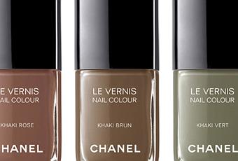 Chanel ne se lasse pas de nous surprendre en sortant les bonnes couleurs au bon moment... Ci-dessus : un aperçu des 3 couleurs d'inspiration militaire qui sortiront cet automne en édition limitée : la collection Khaki.