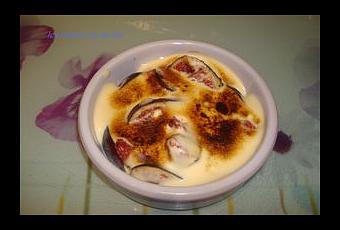 Retirez le fouet et après avoir coupé quelques figues en quatre , dans des ramequins ronds, déposez le sabayon, sans trop recouvrir les figues.