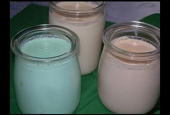 Ingrédients : 900ml de lait entier - 1 yaourt nature - 3 c à s de lait en poudre - 1 c à s(la couleur et le goût n'était pas assez prononcé avec une seule cuillère) 3 c à s de curaçao, crème d'abricots et crème de cerises par pot - 3 c à s de sucre.