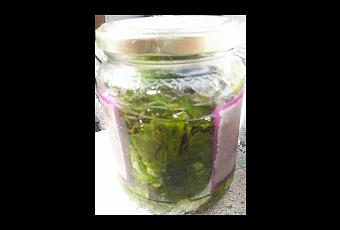 Cueillette de lierre dans le jardin, découpages des feuilles (car elles sont dures et distilleront ainsi leurs actifs plus facilement) séchage des feuilles au soleil, bocal stérilisé, huile de pépins de raisin et hop!!