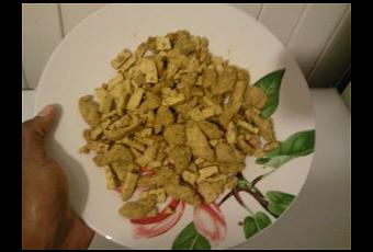 couper en petits dés le tofu et émincer le blanc de poulet en fines lamelles, mélanger le tofu et le blanc de poulet