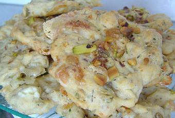 4° Ajoutez les pistaches concassée et le fromage de chèvre émietté à la pâte (gardez quelques pistaches de côté pour la finition).