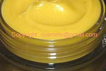 Couleur: jaune dûe à l'extrait CO² de calendula