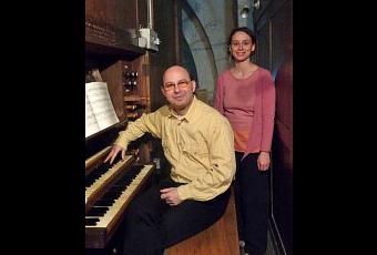 Photo : (archives) Olivier Leguay et Florence Grasset à la tribune de l'orgue de Nantua.