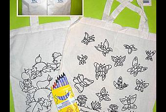 Chaque pochette contient un sac en toile de coton et une pochette de crayons spéciaux. Quand le coloriage sur toile est