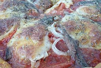 Décorer avec quelques anchois, parsemer d'origan séché.