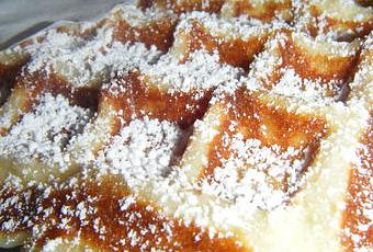 Saupoudrez de sucre glace ou comme mon gourmand de mari , nappez de nutella et saupoudrez de coco râpée....
