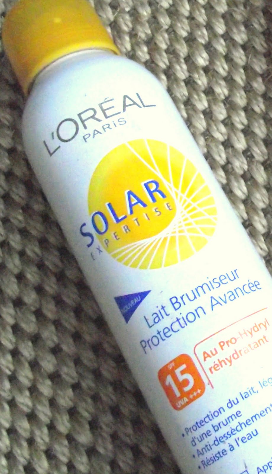 .Lait brumiseur Solar expertise SPF15 de L'OREALJe n'ai jamais été déçue par cette protection solaire et ce,depuis des années..
