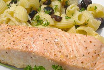 Pendant la cuisson du saumon, mettre à cuire les pâtes. Egoutter, remettre dans la casserole, ajouter le beurre, le gruyère râpé, les rondelles d’olives noires. Goûter et rectifier l’assaisonnement.