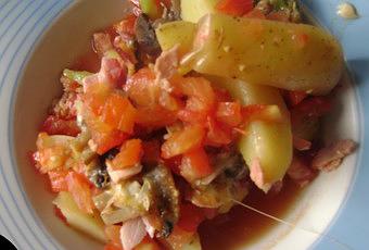 3) Concasser les tomates et les mettre au dessus des pommes de terre.