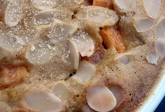 Mettre un peu de sucre sur le dessus, parsemez d'amandes effilées et passez au grill 5 min pour une coloration