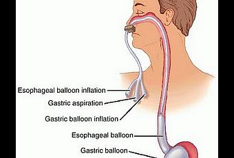 ça permet d'effectuer une compression sur des varices œsophagiennes. Généralement la sonde est également mise en traction. Donc imaginez vous que la sonde sort de la bouche du patient est reliée par un câble au pied du lit par une poulie et qu'au bout du câble, il y a un poids que l'on va diminuer au fur et à mesure du traitement pour diminuer la compression. évidemment le patient est sédaté pour pouvoir supporter ça sans bouger.