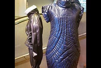 . La couleur: les imprimés or, bleu nuit et paillettes, numérique. Fausses peaux de bêtes, lézard pour s'affranchir du diktat de l'imprimé léopard! Création de Reinhild Dietze, d'Esmod Berlin(ci-dessus) exposées au salon de Tissu Premier à Lille.