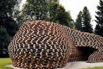 Le "Palettenpavillon" crée par le designer allemand Matthias Loebermann est une structure faite entièrement à partir de palettes d'expédition, ancrés au sol par des tirant, elle est conçu pour être facilement montés et démontés, puis entièrement recyclée. Cette maison est conçu comme un lieu de rencontre temporaire.