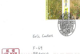 Un court message pour partager avec vous cette élégante lettre affranchie avec une série de 2 timbres se-tenant, émis le 9 août 2010, consacrée à des peintures d'artistes taïwanais contemporains.