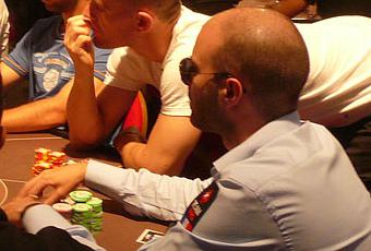 Malgré un stack de moins de 10 000 jetons, Gus Hansen ne perd pas son humour.