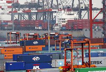 Le graphique suivant présente la balance commerciale des États-Unis. Notez que la hausse récente est attribuable à la récession, durant laquelle la consommation a grandement fait diminuer les importations.
