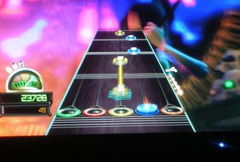 Ici je ne parlerai pas de technologie mais d'expérience utilisateur. J'ai testé, sur le stand Nvidia présent à Rock en Seine, le jeu vidéo en 3D. Guitar Hero en l'occurence, un jeu dont je suis fan.