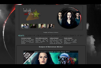 Après plusieurs jours que je travaille dessus, je vous présente le forum twilight vef france ! Ce forum a toutes les catégories nécessaires pour les fans ! Les livres, les films, les goodies, les conventions officielles !