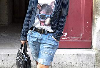 Veste : Mango, T-shirt : Insight, short : Replay, Mocassins : YMC, sac : Lancel.