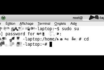 Pour passer du statut d'utilisateur à celui d'administrateur ou 'root', on tape dans le terminal la commande ci-dessous :