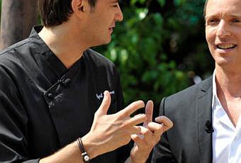 Cyril Lignac et Stephane Rotenberg dans "Un dîner vraiment parfait, le combat des régions"