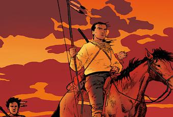 Pour construire l’histoire de Sky Hawk, Jiro Taniguchi s’est documenté sur les migrants japonais vers les États-Unis à l’époque de la ruée vers l’Ouest. Il tisse les fils des destins imaginaires de deux samouraïs qui ont fui leur pays après avoir été défaits lors d’une bataille. Il décide de refaire leur vie dans la nature exubérante de l’Ouest américain. Mais c’est sans compter sur la présence des indiens (des sioux Oglala), bienveillants envers les deux hommes après qu’ils eurent sauvé une squaw persécutée par des Blancs. Les chercheurs d’or, protégés par les tuniques bleues, mènent la vie dure aux indiens. C’en est assez pour réveiller le sens de l’honneur légendaire des samouraïs qui décident de s’engager corps et âme dans, la lutte contre l’envahisseur aux côtés de leurs hôtes dans la tribu de Crazy Horse. L’Histoire rejoint les destinés de nos deux samouraïs puisque les voilà engagés dans le grand tourbillon qui va les conduire à la bataille de Little Big Horn contre le machiavélique George Armstrong Custer.