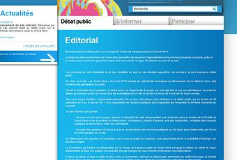 Le site s’articule autour de trois rubriques : « Le débat public », « S’informer » et « Participer » Les internautes y trouveront toutes les informations et les documents sur le projet de métro automatique qui desservira 40 gares de l’agglomération parisienne.