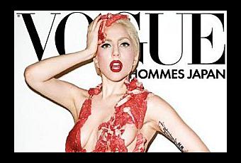 Gaga a provoqué la colère de la PETA, l'association américaine protectrice des animaux en posant couverte de viande crue sur la couverture du magazine Vogue Hommes Japon. Elle