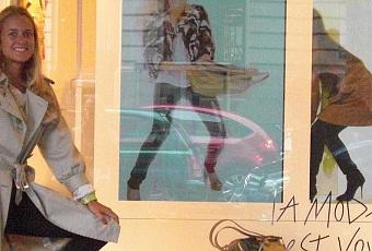 Ouiii...vous pouvez me voir m'amuser à essayer des vêtements et découvrir le dressing de rêve que j'ai choisi aux Galeries pour décorer cette vitrine.