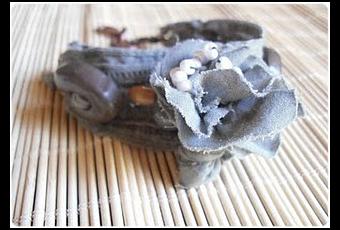 Voici un autre bracelet avec ruban. Un bracelet kaki avec une fleur en tissu et des petites perles blanches, des feuilles marron boutonnées, en pâte polymère et des perles en bois. J'ai dû faire un peu de couture pour ce bracelet. Je m'en suis bien sortie