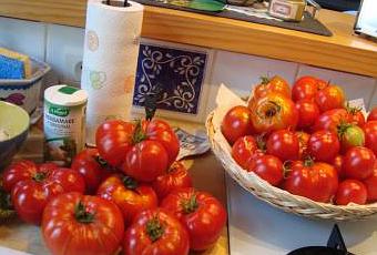 C'est la pleine période des tomates au jardin et la magnifique cueillette de Roger m'a incitée à mettre au menu d'aujourd'hui "des tomates farcies".
