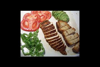 4 escalopes de poulet, 2 C.A.S. de paprika, 1C.A.C. de piment fort en poudre (facultatif) 2 C.A.S. de chapelure, 2 C.A.S de cumin moulu, 2 C.A.S. de coriandre en graines, 2 C.A.S. de graines de sésame, sel, huile