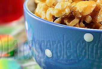 Verser le tout sur le popcorn et bien enrober celui-ci du caramel, à l’aide d’une maryse.