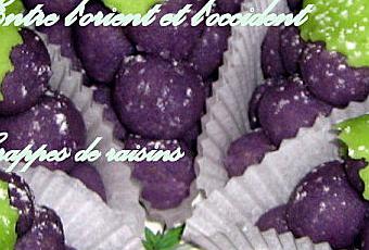 Je partage avec vous des fruits à base de pâte d'amande et plus précisément la grappe de raisin mais malheureusement je n'ai pas pris les photos des étapes , je vous promet d'y remédier prochainement .La recette de base de la pâte d'amande ici,sauf que je n'ai pas aromatiser et j'ai colorer en violet pour le raisin et en vert pour les feuilles vous pouvez aussi colorer les raisins en vert c'est selon les goûts