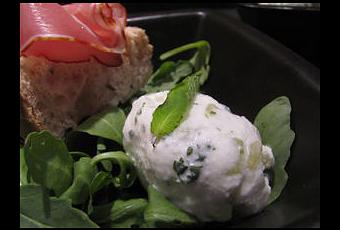 Je n'avais jamais mangé de glace salée. J'ai trouvé cette recette ici. C'est une crème glacée salée, comme du tzatziki, idéale pour garnir une salade de roquette avec du jambon cru, par exemple.