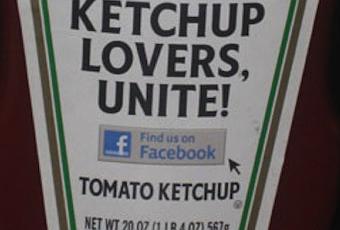 Pourquoi pas : la marque de ketchup Heinz a décidé de promouvoir sa page Facebook directement sur ses bouteilles, via un macaron assez visible… Suite (logique ?) des évènements : les marques de pâtes vont se mettre à apposer des références à leurs comptes Twitter sur les emballages de leurs produits ? Hum…^^