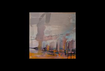 Mais les ensembles que compose l’artiste forment de tellement beaux accords, entre collages (photos, papiers), peinture, crayon, écritures, que ces cités angoissantes deviennent souvent des bonheurs de graphisme…