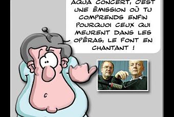 Une seule solution : écouter en direct ou en podscast « Aqua Concert » (sur la Première de la Radio Suisse Romande) : une émission de Jean-Charles Simon et Patrick Lapp « pour écouter de la musique classique et savourer leur regard caustique et décalé sur l’actualité ».