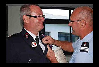 Cette cérémonie s'est déroulée en compagnie de son épouse , de ses enfants et nombreux amis .pompiers en activité et retraités