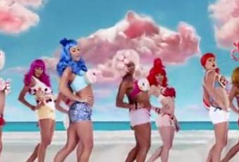 L'univers tout sucré de Katy Perry fait languir les gourmandes et chavirer les hommes. Dans un monde paré de confiseries en tous genres : guimauves, sucres d'orges, sucettes... La chanteuse excentrique est belle à croquer grâce à ses différentes tenues aussi pétillantes les unes que les autres.