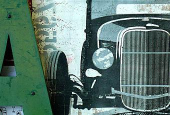 Dans une première vie, Craig Metros était designer chez Ford à Detroit.Il travaille toujours pour Ford mais à Melbourne désormais où il vit et possède également un atelier. Il oeuvre dans la galaxie d'une americana contemporaine regroupant voitures, engins spatiaux et objets divers dans des tableaux composites mêlant bois, peinture acrylique et métaux divers. Il est l'un des contributeurs favoris de l'excellent Fuel magazine, titre australien de bonne tenue. Outre un métier bonnard et du talent à en revendre, il possède également un coupé Ford 31 préparé par ses soins. M'agace un peu quoi...