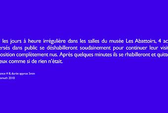 Sur un mur situé à l’entrée des Abattoirs, une phrase décrit une action en train de se produire à proximité du musée sans qu’aucun n’indice ne permette de confirmer la réalité de cet événement.