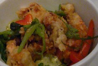 Vendredi soir, dîner dans un de nos restaurants favoris quand il s'agit de fêter quelque chose : KGB, Kitchen Galerie bis. Ce fut un régal de bout en bout avec une mention particulière pour des "tempura de crabe mou et encornets avec condiment shiso-wasabi", servis dans une petite cocotte. Couleurs, parfums, saveurs, textures, tout y était pensé pour le plaisir des sens.