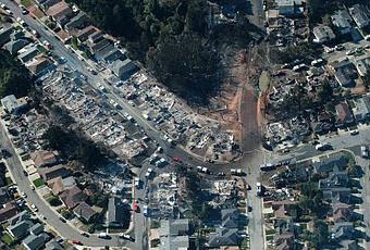Des équipes de pompiers a essayé d'éteindre les restes d'un feu énorme ce vendredi après la rupture d'un gazoduc et une explosion a éventré un quartier proche de San Francisco..